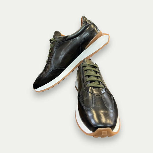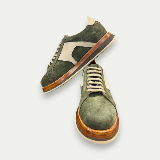 CITY BASKETS NAPPA VERT OLIVE HOMME LACETS SEMELLES BICOLORE