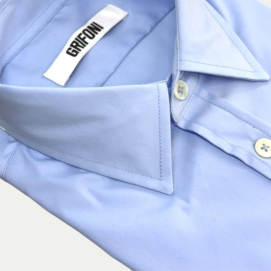 GRIFONI CHEMISE BUSINESS HOMME COTON STRETCH BLU CIEL