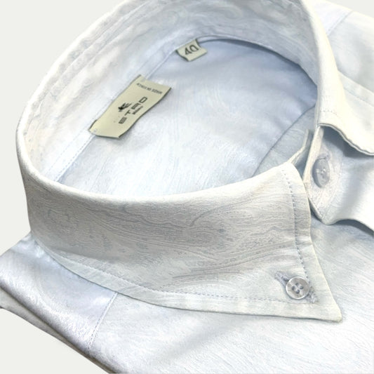 ETRO CHEMISE HOMME EN COTON BLEU CIEL SATINÉE MOTIF PAISLEY TON SUR TON