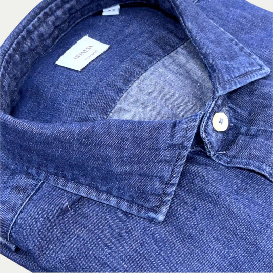 NERVESA CHEMISE EN TISSU OXFORD COL ITALIEN BLU CIEL