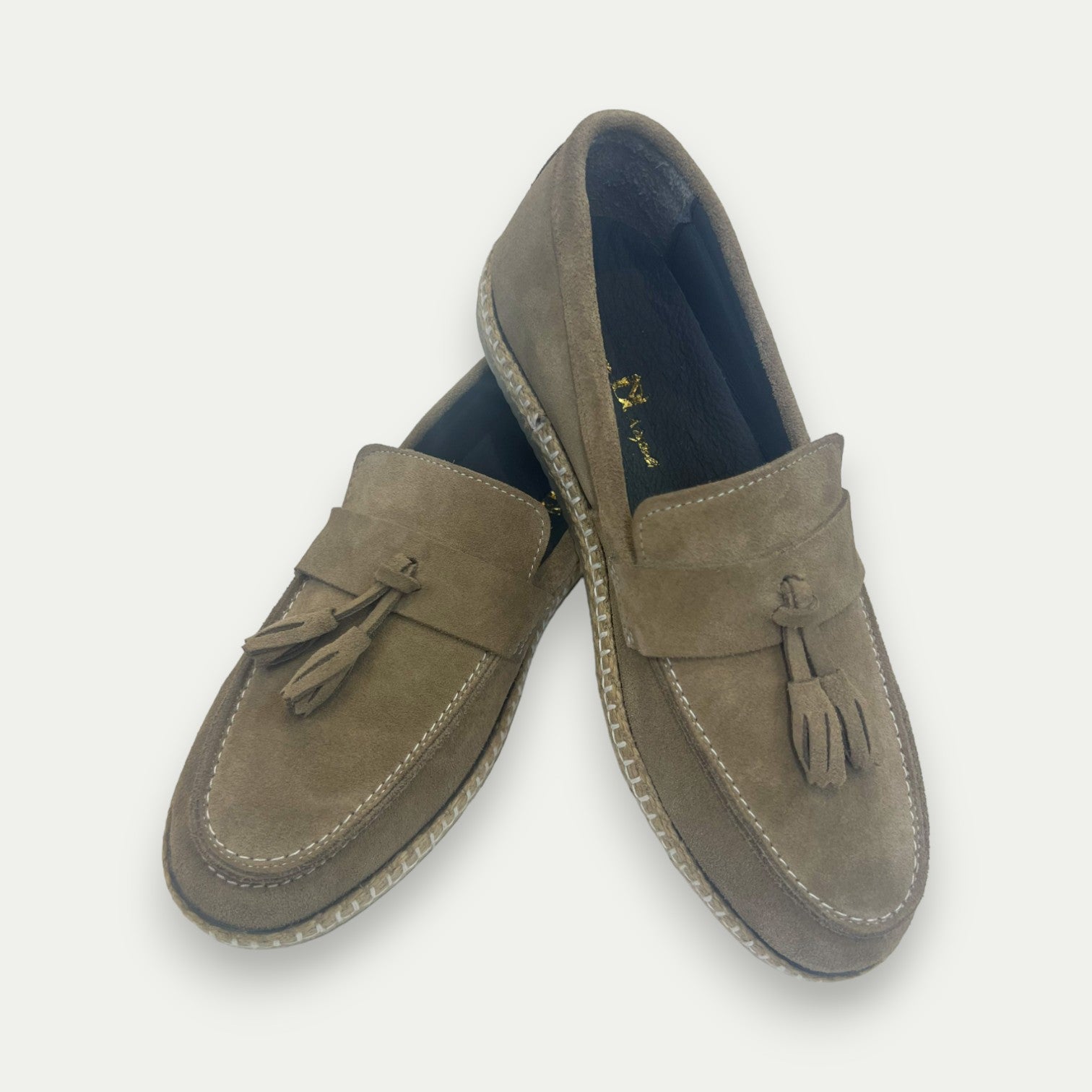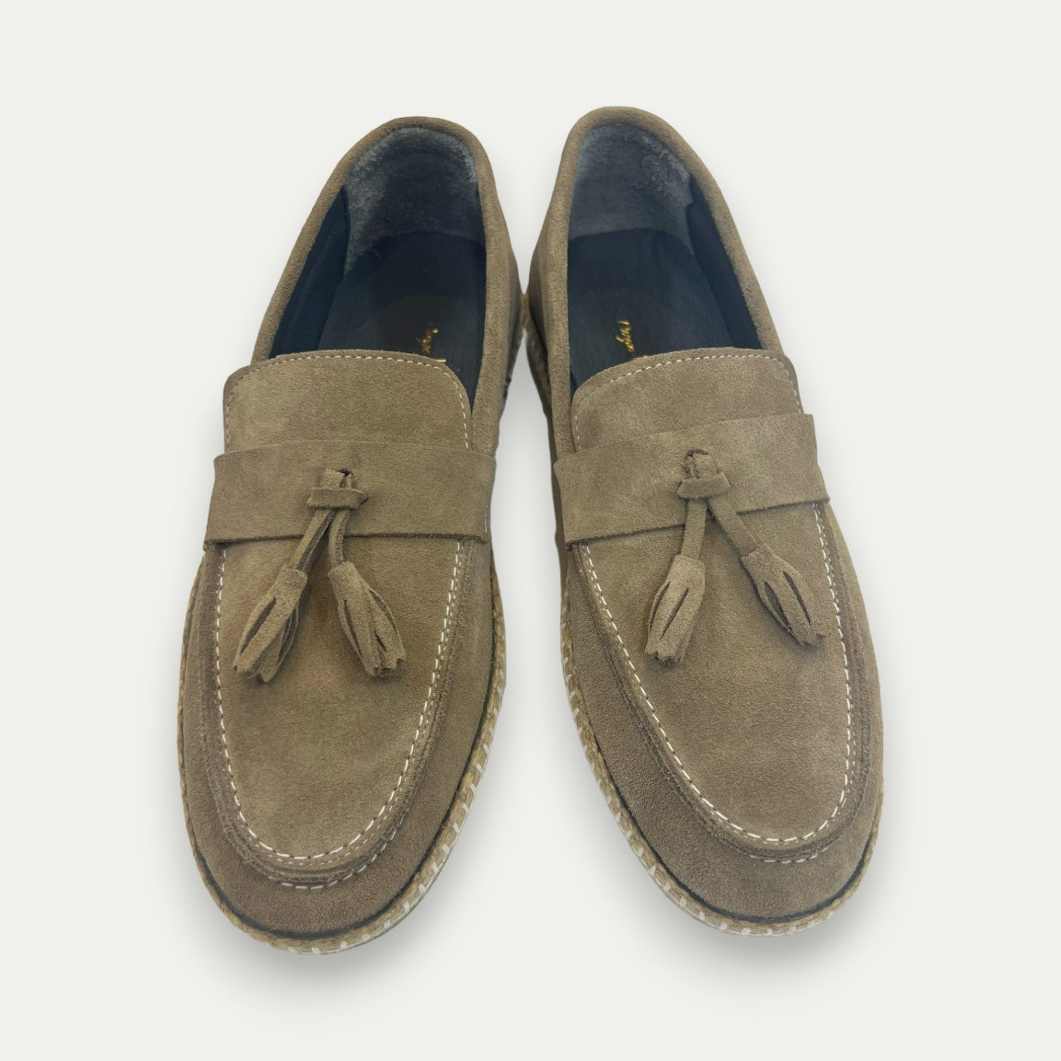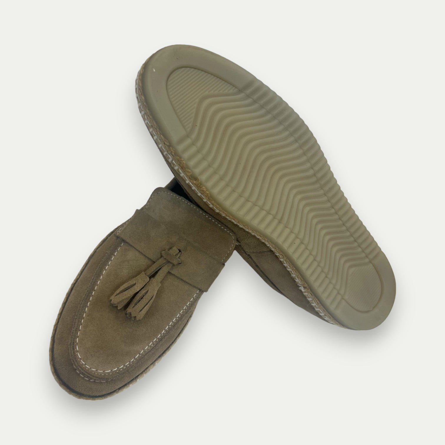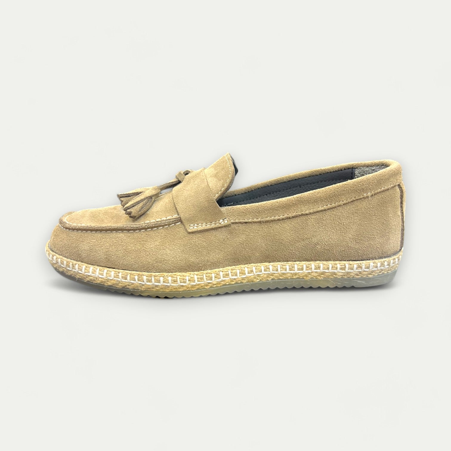 Apportez une note de sophistication à votre collection de chaussures avec ce mocassin à pompon en daim beige. Soigneusement confectionné, ce modèle marie élégance et confort, idéal pour sublimer vos tenues décontractées ou habillées. Le daim de couleur bleu vif est sublimé par une semelle en corde tressée, ajoutant une touche artisanale à ce mocassin classique revisité.