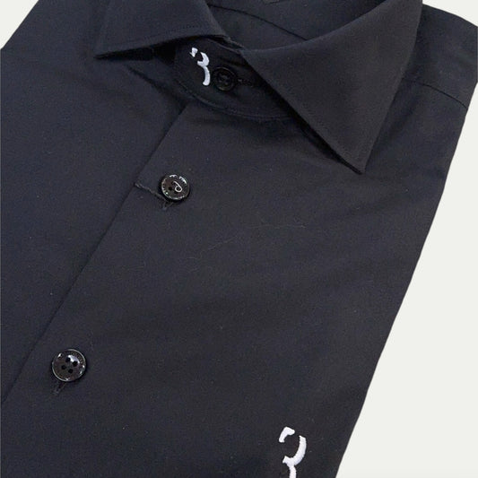 BILLIONAIRE CHEMISE HOMME COTON STRETCH NOIR LOGO CONTRASTE BLANC