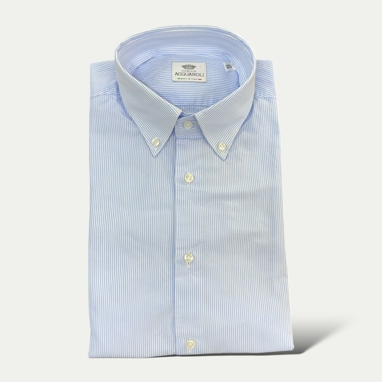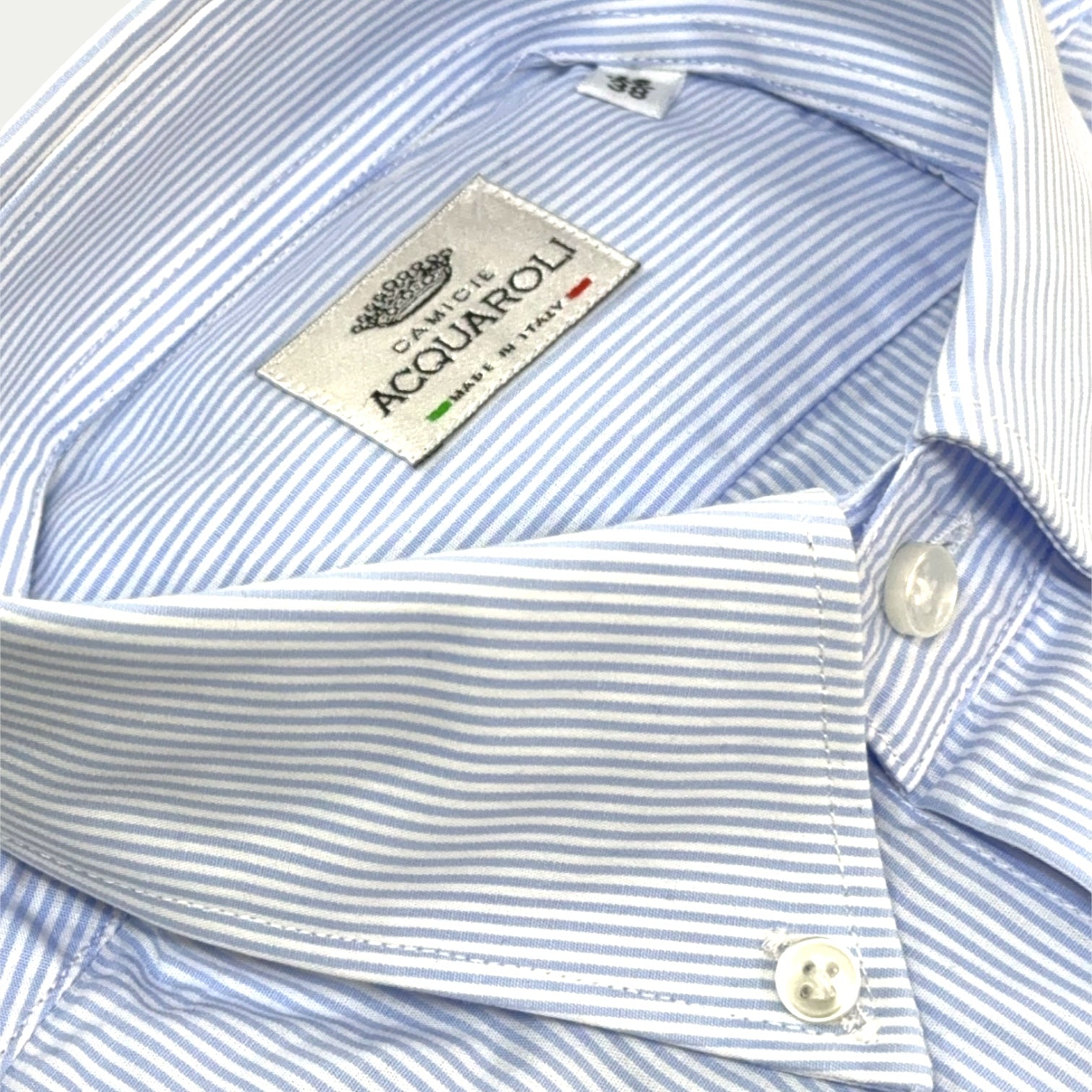 ACQUAROLI CHEMISE HOMME EN COTON MILLE RAYURES BLANCHE-BLEU CIEL