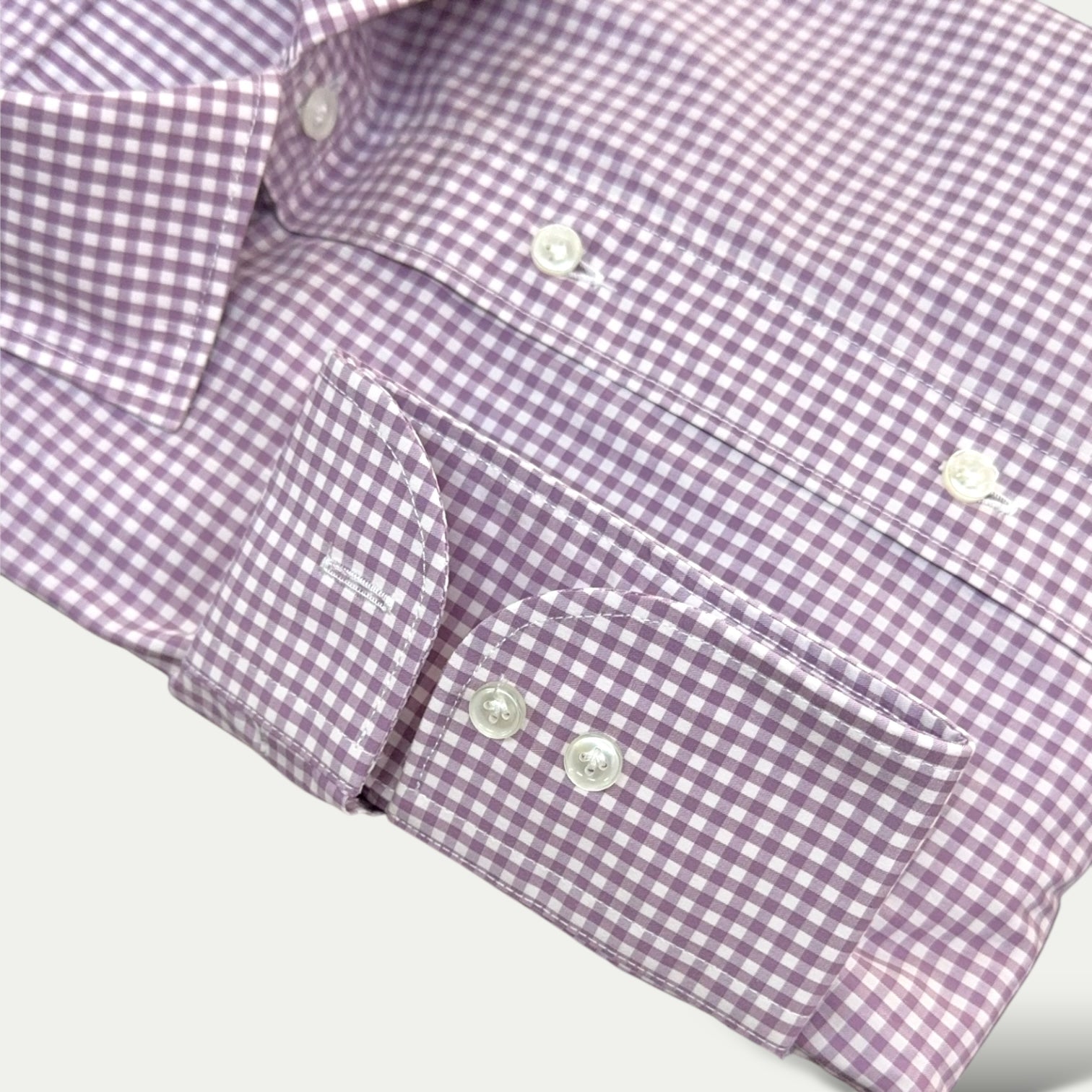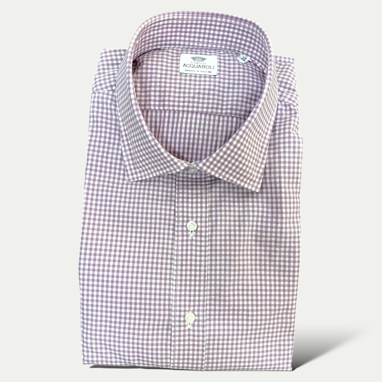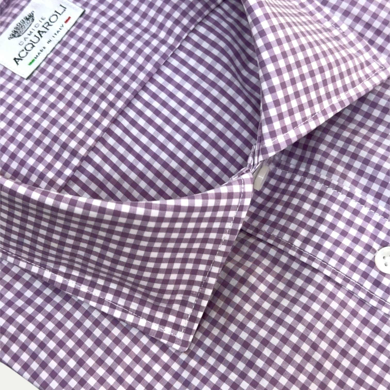 ACQUAROLI CHEMISE HOMME EN COTON MOTIF CARREAUX VIOLET-BLANC