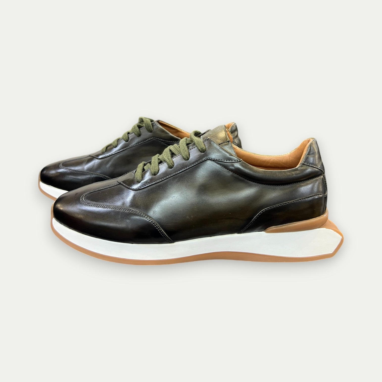 CITY BASKETS NAPPA VERT OLIVE HOMME LACETS SEMELLES BICOLORE