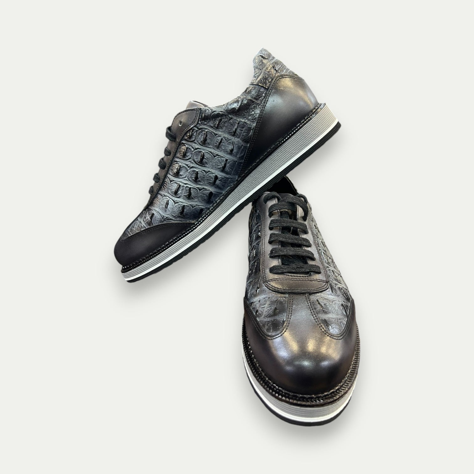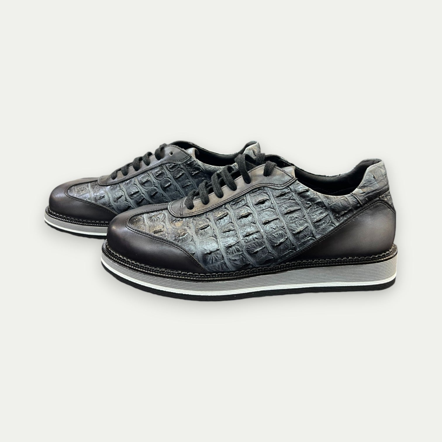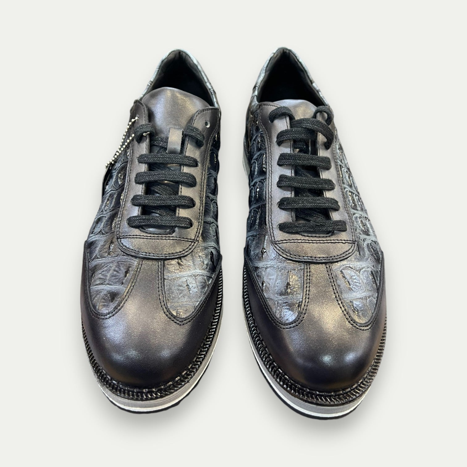 Ces sneakers en cuir véritable arborent un élégant motif croco, apportant une touche luxueuse et moderne à votre tenue. Elles combinent l’allure d’une chaussure habillée avec le confort d’une basket.