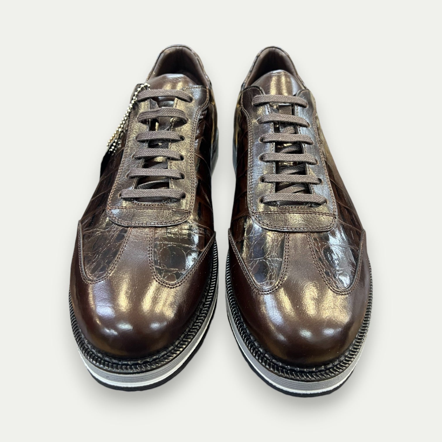Ces sneakers en cuir véritable arborent un élégant motif croco, apportant une touche luxueuse et moderne à votre tenue. Elles combinent l’allure d’une chaussure habillée avec le confort d’une basket.