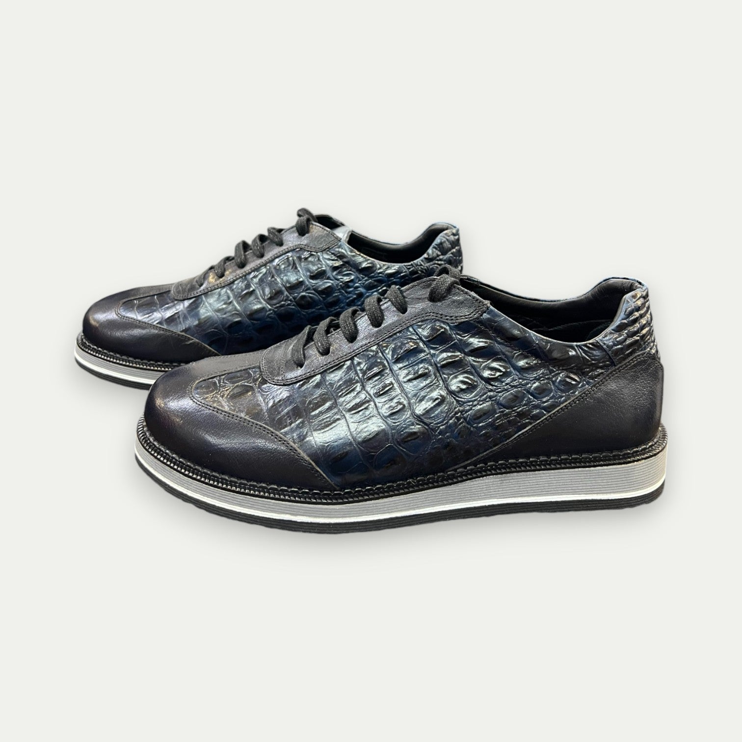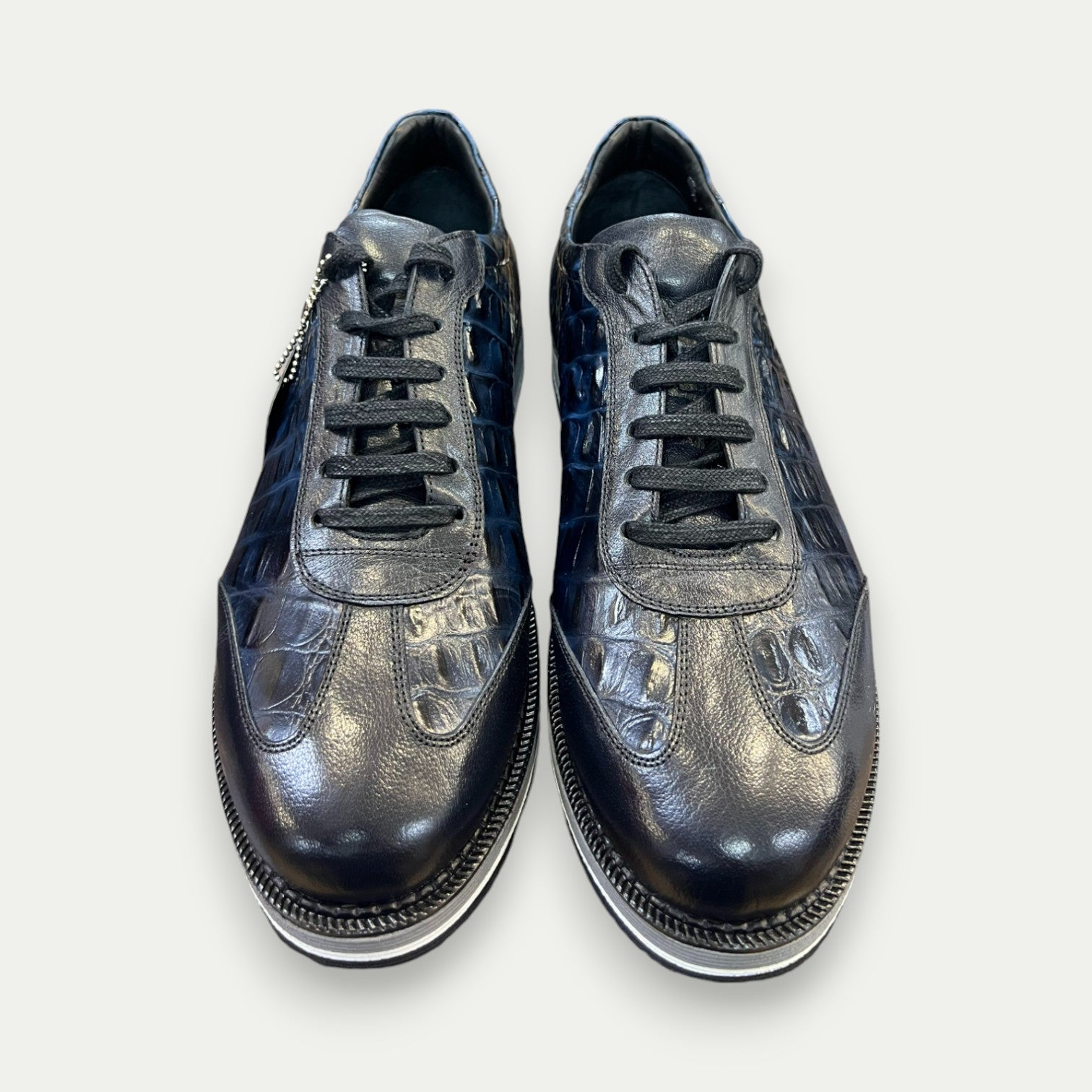 Ces sneakers en cuir véritable arborent un élégant motif croco, apportant une touche luxueuse et moderne à votre tenue. Elles combinent l’allure d’une chaussure habillée avec le confort d’une basket.