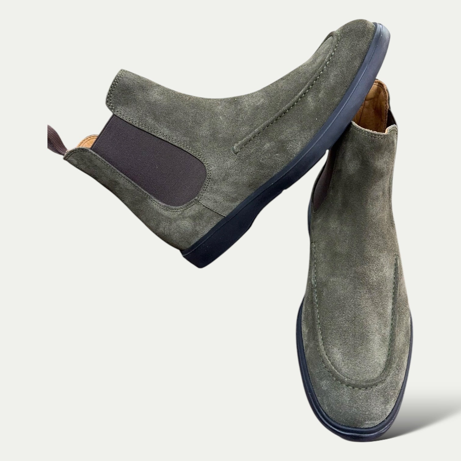 CHELSEA BOOTS EN DAIM VERT KAKI