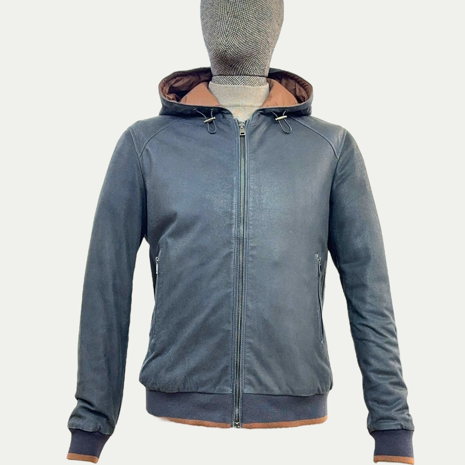 Le cuir de chèvre utilisé pour ce blouson se distingue par sa texture légèrement grainée, qui confère un caractère unique à chaque pièce. Ce cuir de haute qualité est résistant à l’usure, tout en étant assez souple pour garantir un confort optimal. Sa finition semi-mate ajoute une dimension raffinée, parfaite pour une pièce de caractère.