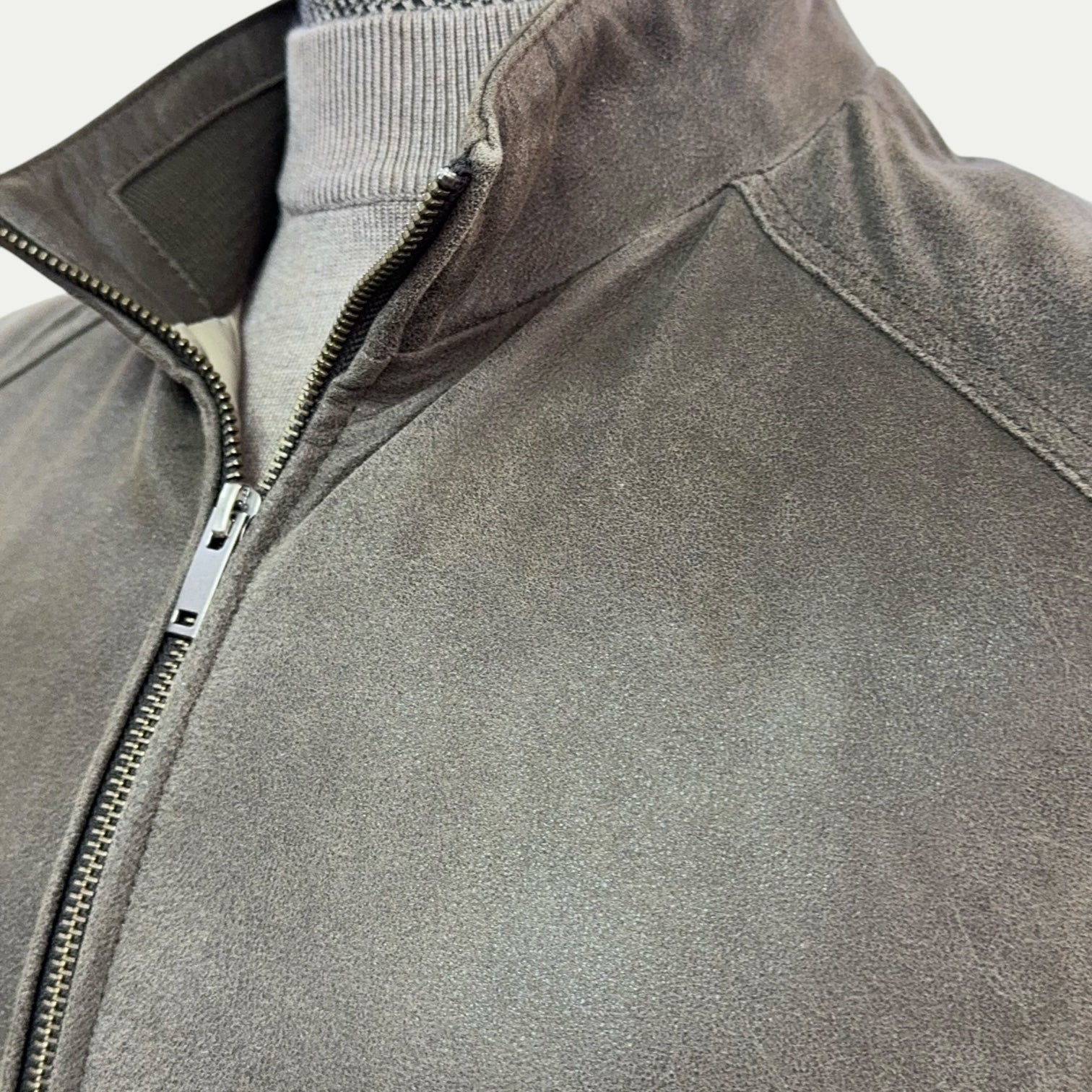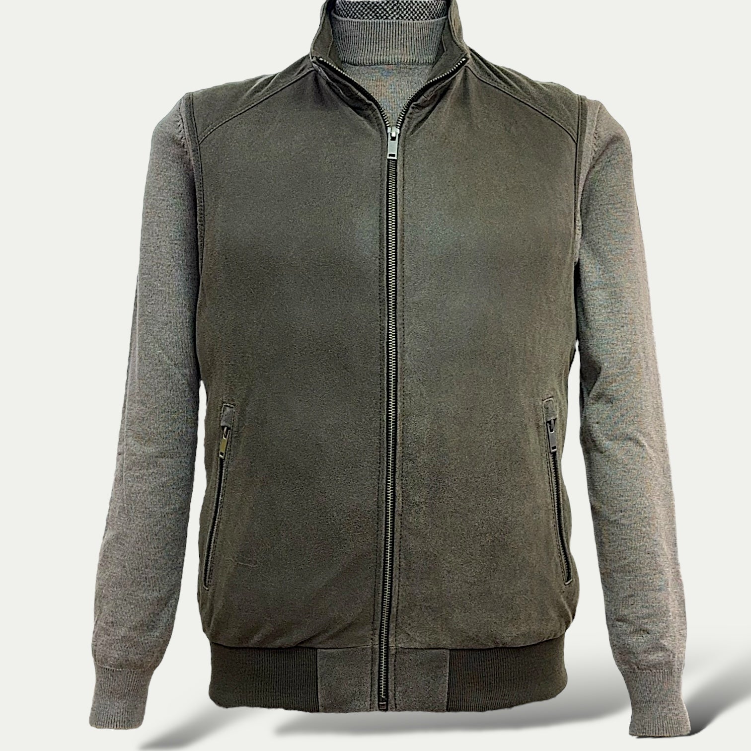 Veste en cuir suédé marron foncé avec manches en laine grise - Diego Napoli