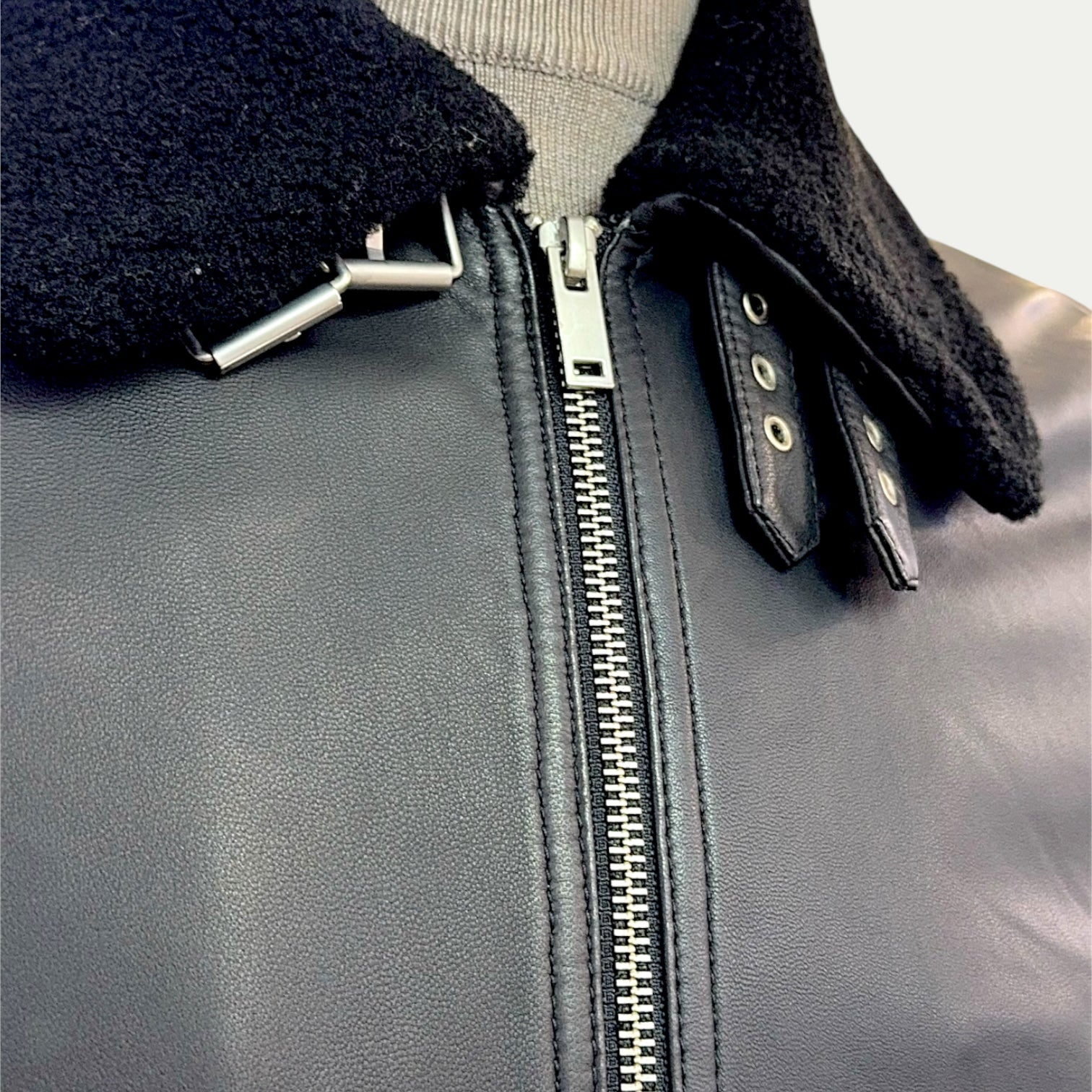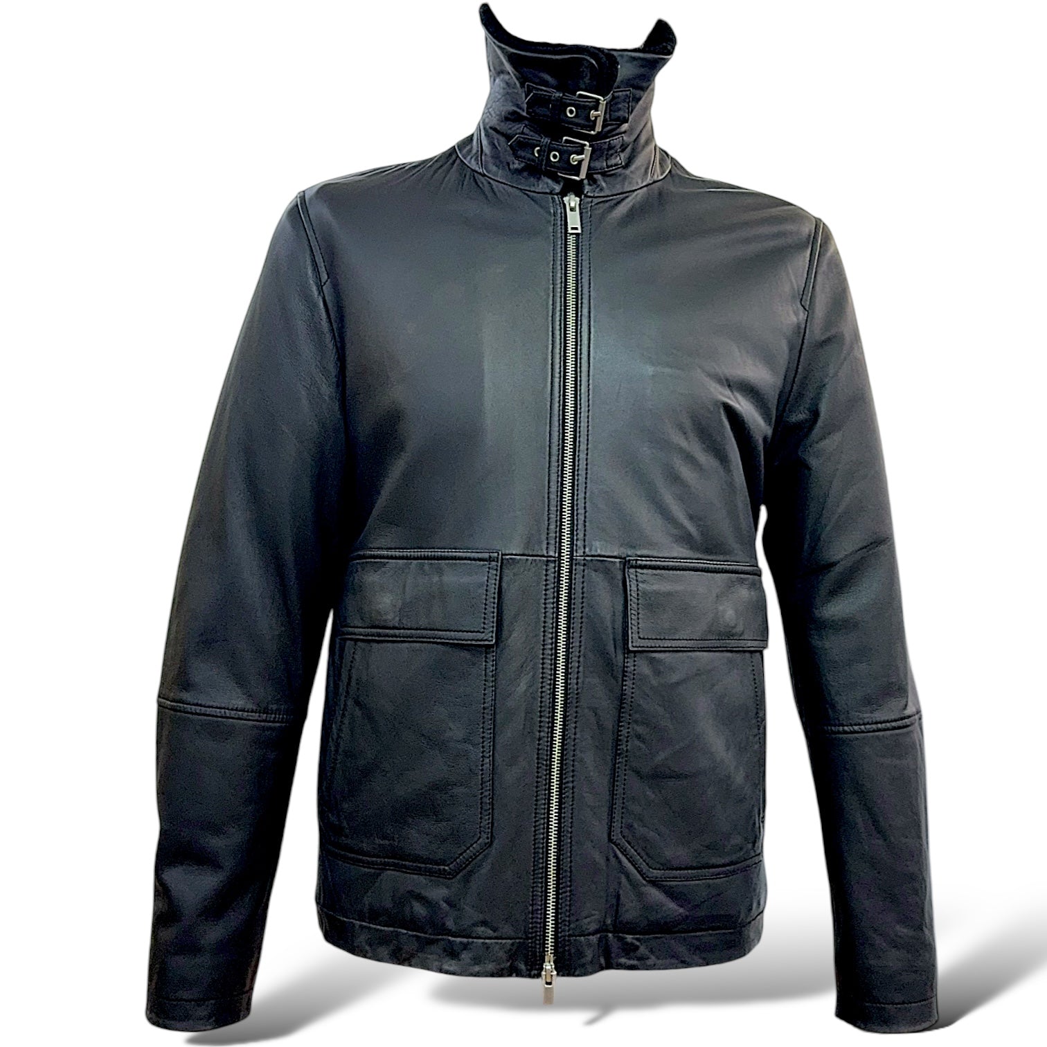 Dotée de grandes poches avant à rabat et d’une fermeture éclair centrale robuste, cette veste allie fonctionnalité et design épuré. Les finitions soignées et les coutures apparentes renforcent son allure moderne, tandis que l’intérieur est conçu pour un confort maximal. Parfaite pour des occasions habillées ou pour ajouter du caractère à une tenue casual, cette veste en cuir d’agneau est un incontournable de la garde-robe masculine.