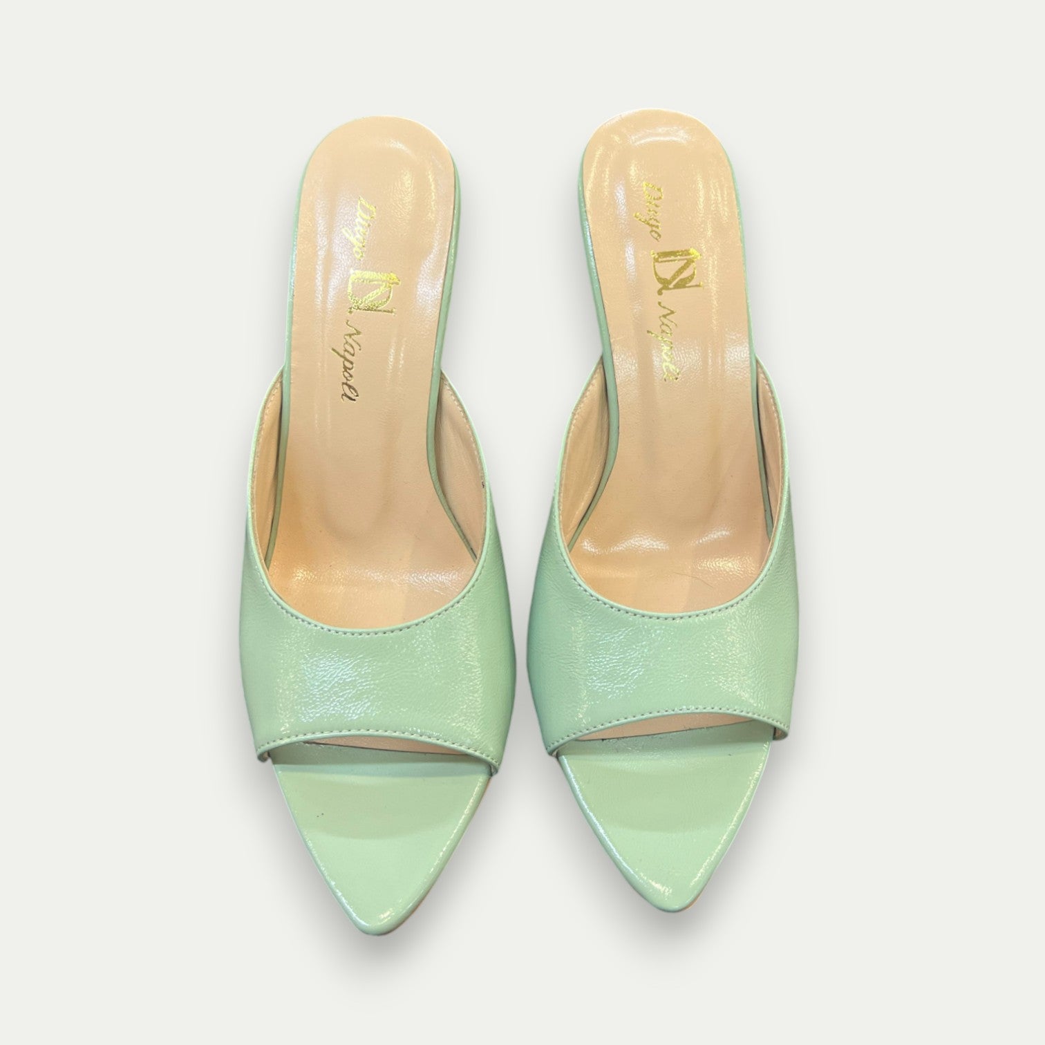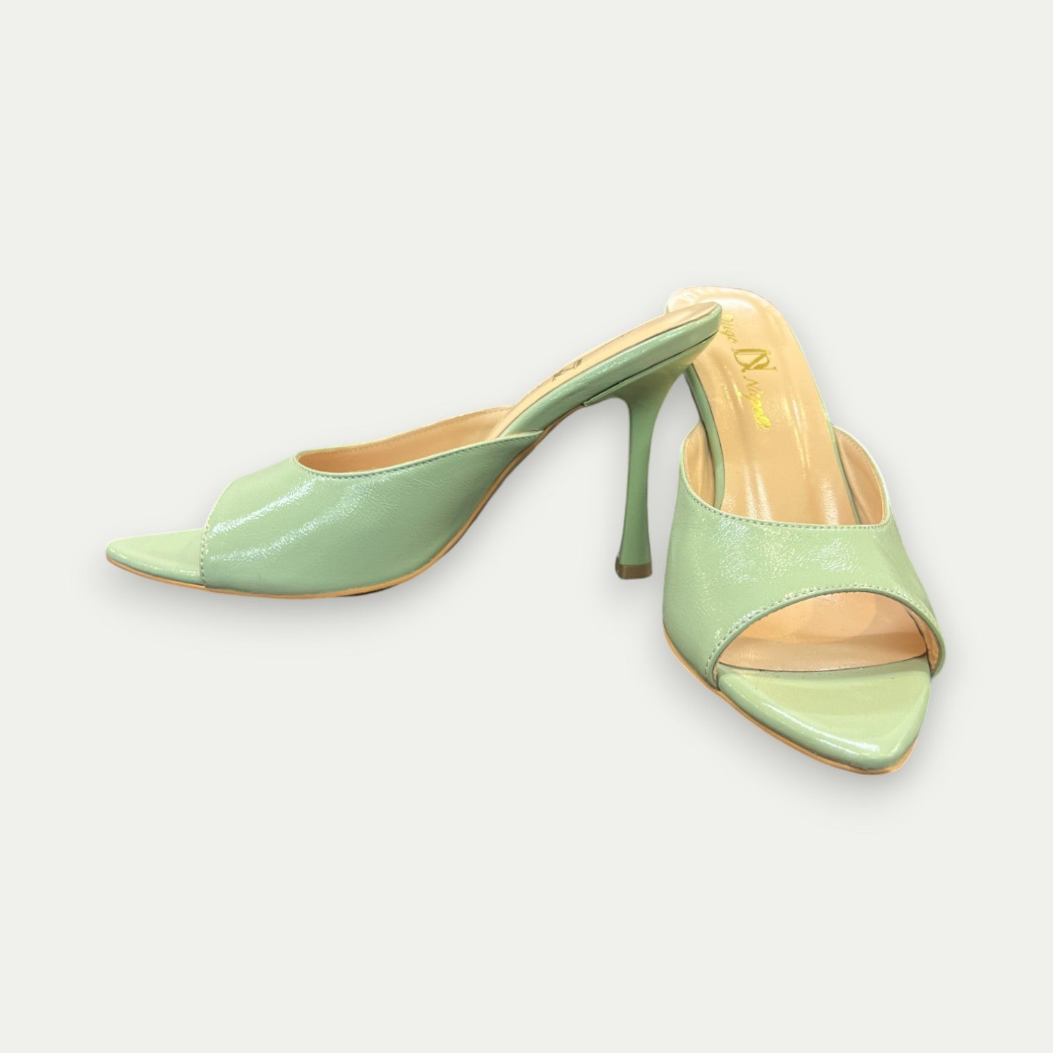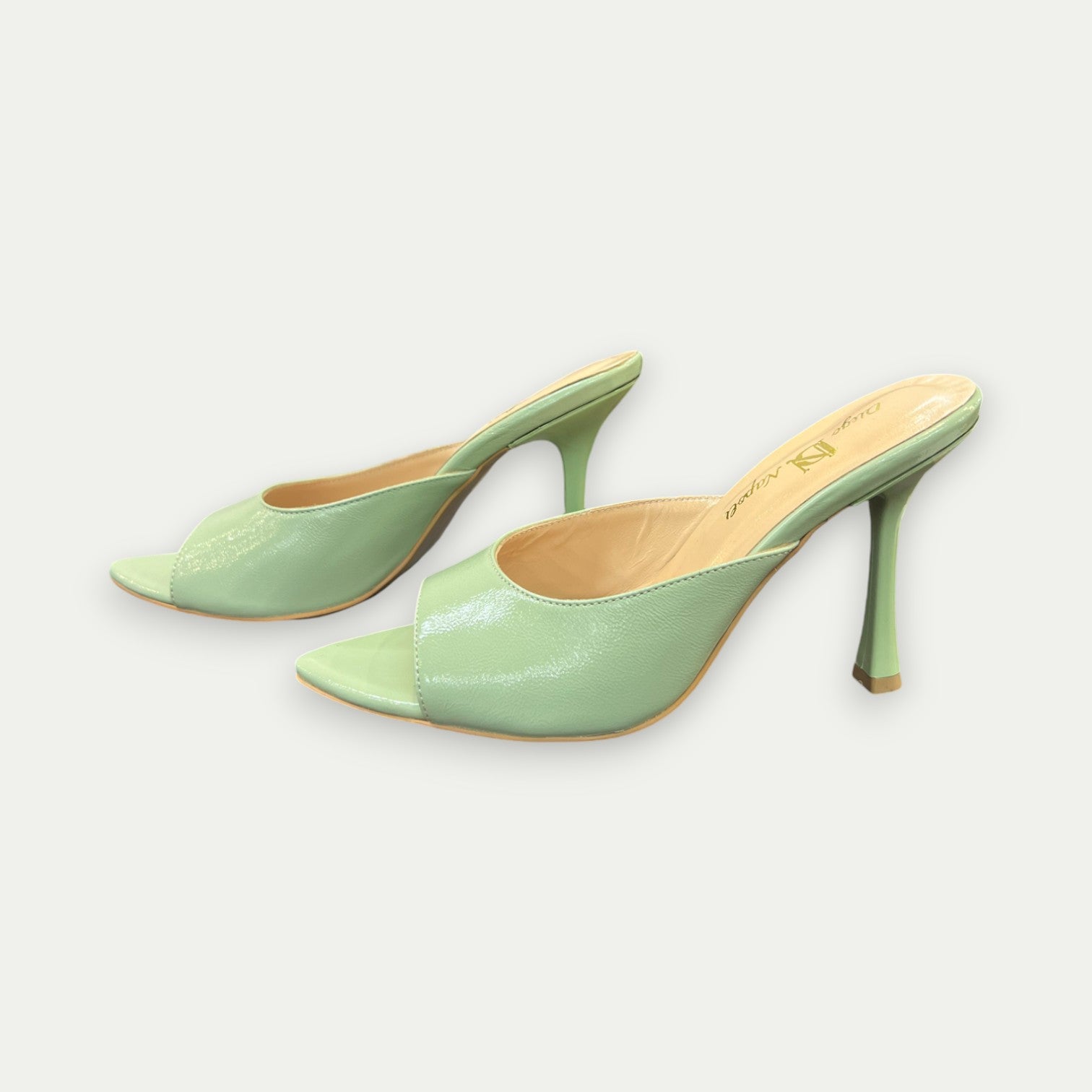 TALONS AIGUILLE EN CUIR VERNIS PISTACHE